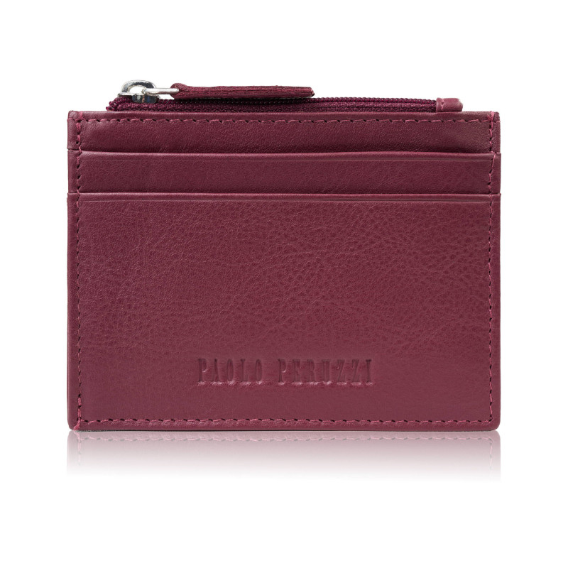 Etui na karty skórzane czerwone z kieszonką na suwak Paolo Peruzzi AY-17