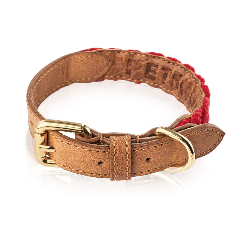Obroża dla psa skórzana pleciona czerwona rozmiar S Petsome 12P03S