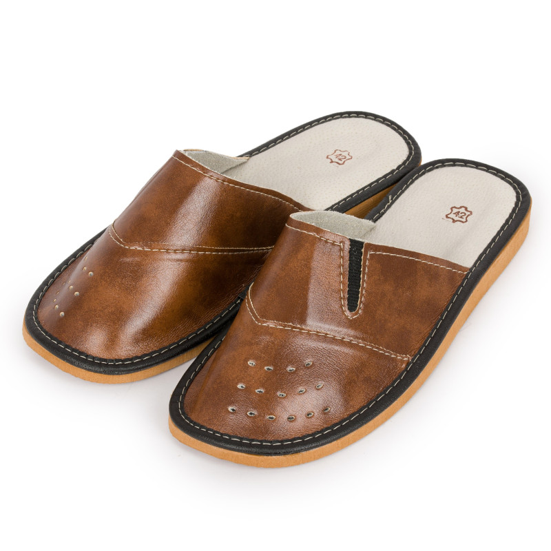 Pantofle męskie R.46 domowe skóra eko wkładka ortopedyczna KM-15-BR-46