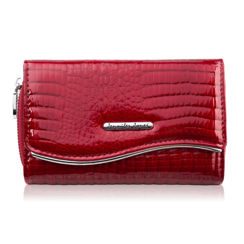 Portfel damski SP-24-CRD marki Jennifer Jones to połączenie klasy, funkcjonalności i luksusowego designu. Wykonany z lakierowanej skóry naturalnej ze zwierzęcym wzorem, przyciąga spojrzenia intensywnym czerwonym kolorem oraz efektownym wzorem. To średni portfel damski, który dzięki eleganckiej formie i przemyślanej organizacji wnętrza idealnie sprawdzi się na co dzień.