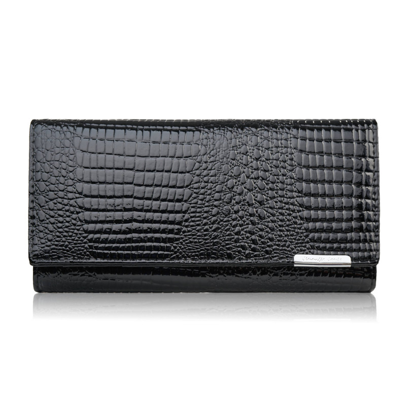 Portfel damski skórzany lakierowany czarny z tłoczeniem croco SP-16-CBL